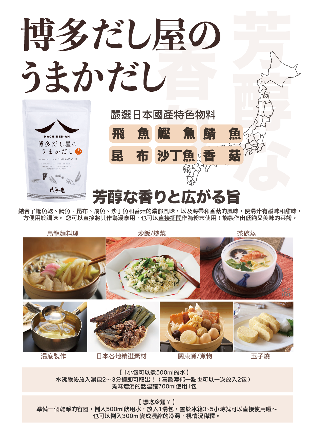 混和各種嚴選素材的茶包式飛魚高湯。 能適用於各種形式的料理 。